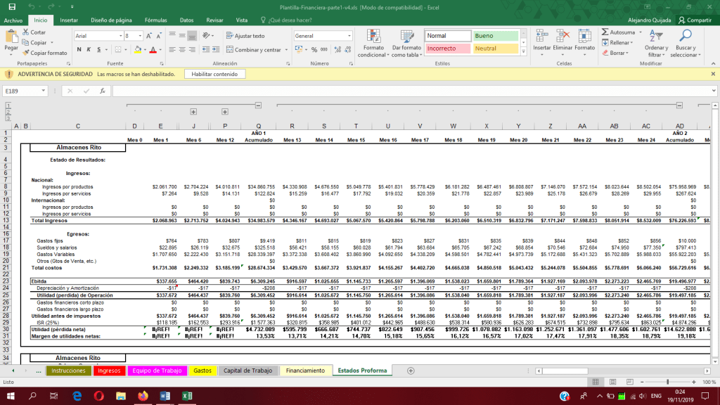 Plantilla en Excel 1